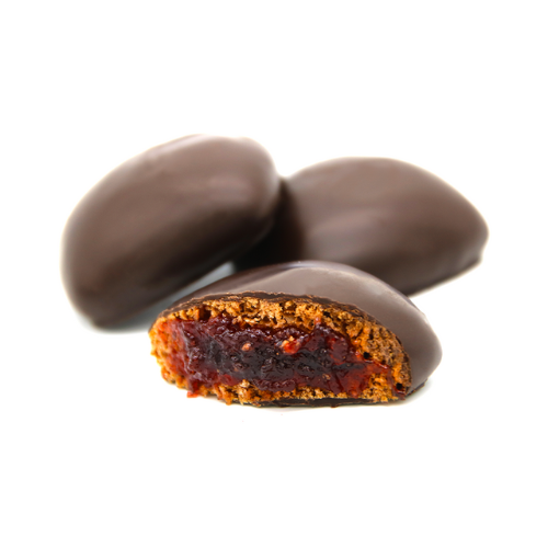 Buonissimi mostaccioli ripieni di marmellata di amarene ricoperti da cioccolato fondente.