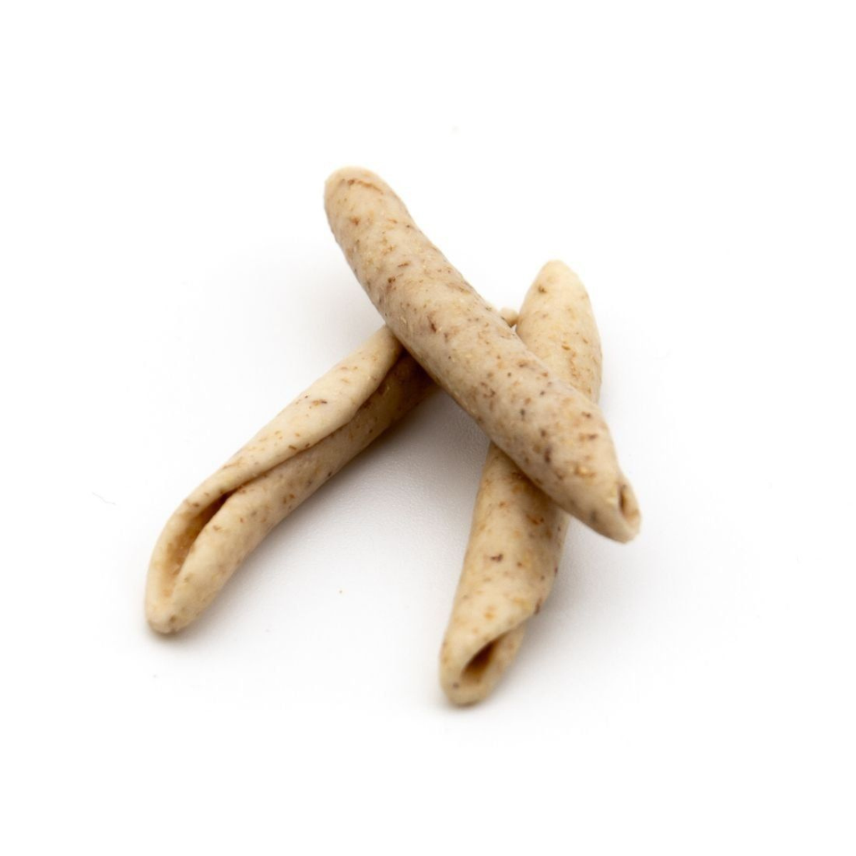 Pasta tipica pugliese che unisce orecchiette e maccheroni. Realizzati con semola di grano duro, sono ideali per primi piatti ricchi e tradizionali, trattenendo perfettamente ogni tipo di sugo. Un vero simbolo della cucina salentina.